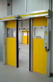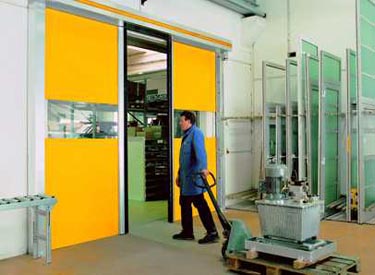 The high-speed door ECOSPRINT with its maximum size of 3.5 x 3.5 metres and its extensive features is an economical introduction to vertical opening technology. Due to the bi-parting opening of the two door halves, the door opens twice as fast. The entire opening height is immediately accessible to the user, enabling quick and safe goods traffic.