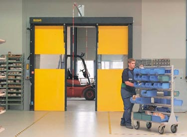 We offer a reliable solution for quick and safe through-traffic with the lateral opening principle of its high-speed door NOVOSPRINT. Opening time is twice as fast due to the lateral opening of the door halves and in contrast to vertically opening doors, the complete opening height is immediately accessible for the user.
