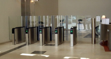 Full height and waist height prestige high quality turnstiles designed for the corporate customer to guide personnel in security areas.